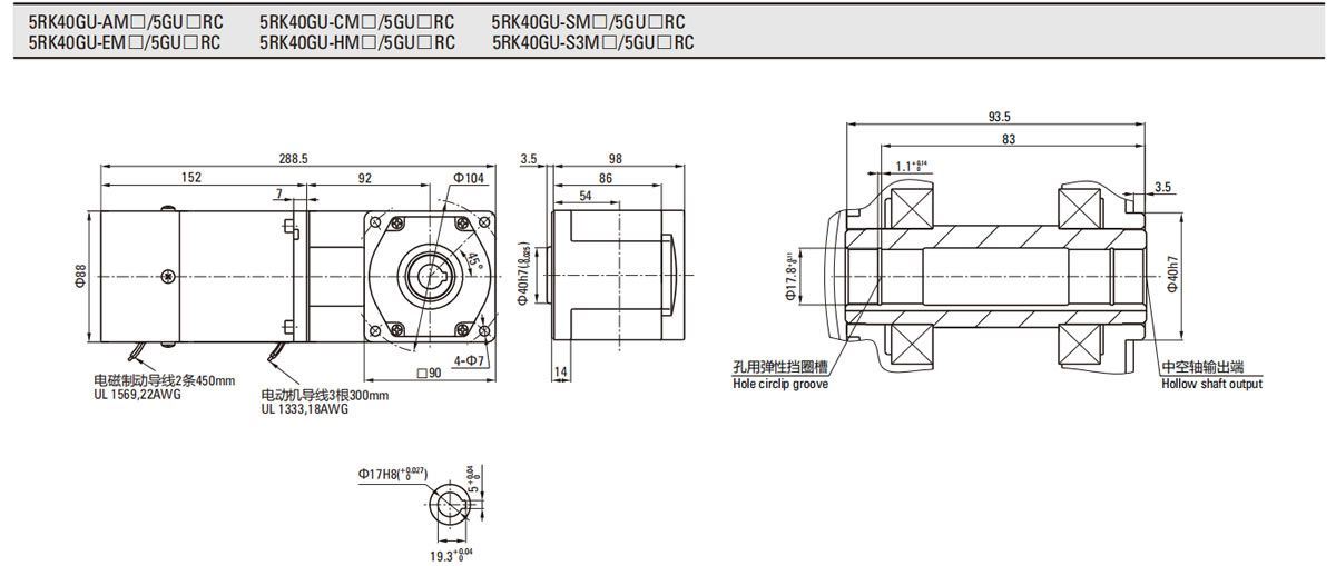 | 5RK40GU-AM 5RK40GU-EM 5RK40GU-CM 5RK40GU-HM 5RK40GU-SM 5RK40GU-S3M | 5GU()RC 5GU()RT | แรงบิด | 50Hz | 1.58 | 1.89 | 2.63 | 3.16 | 3.79 | 5.26 | 6.31 | 6.80 | 9.50 | 11.4 | 14.2 | 17.0 | 18.9 | 20.0 | 20.0 | 20.0 |